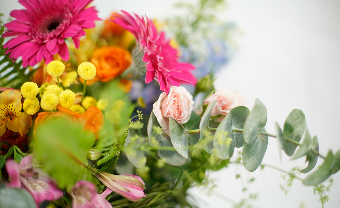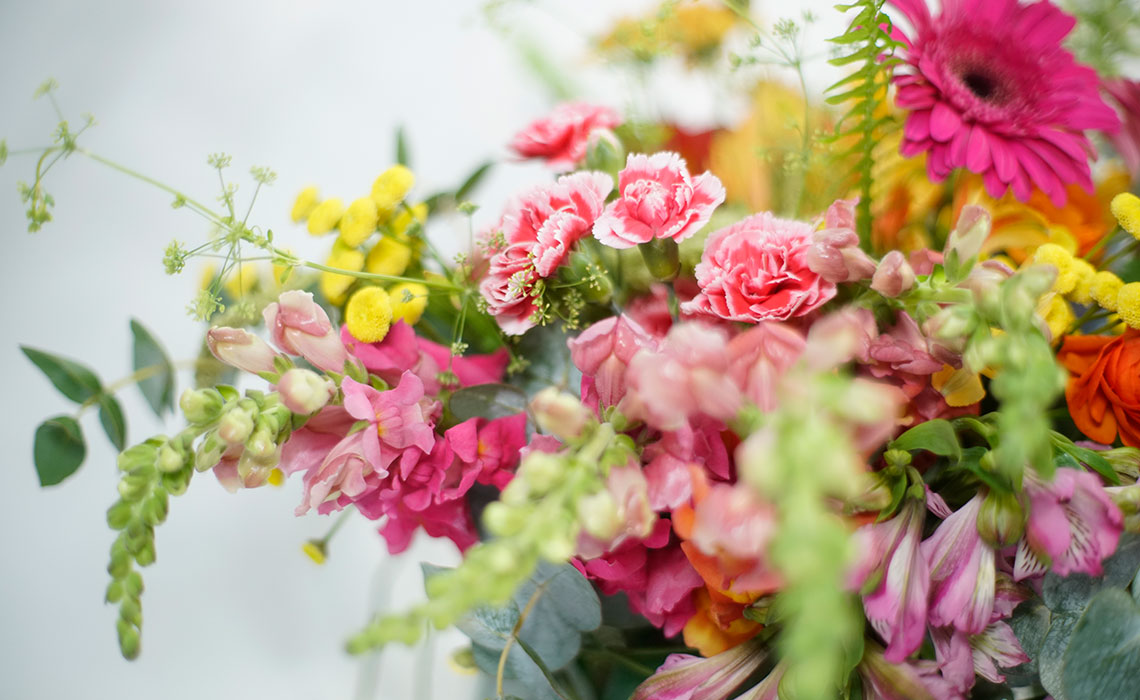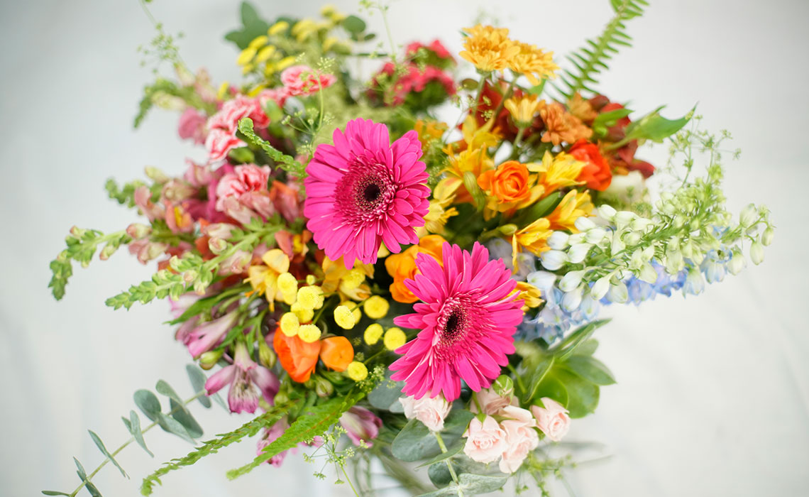 Arreglo en Pecera de Cristal, la combinación perfecta de armonía, unidad y amor con las texturas y colores de estas flores. Delphinium, minirosas, ranúnculus, alstromelia, perritos y follajes finos.
